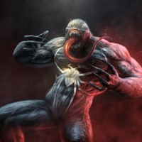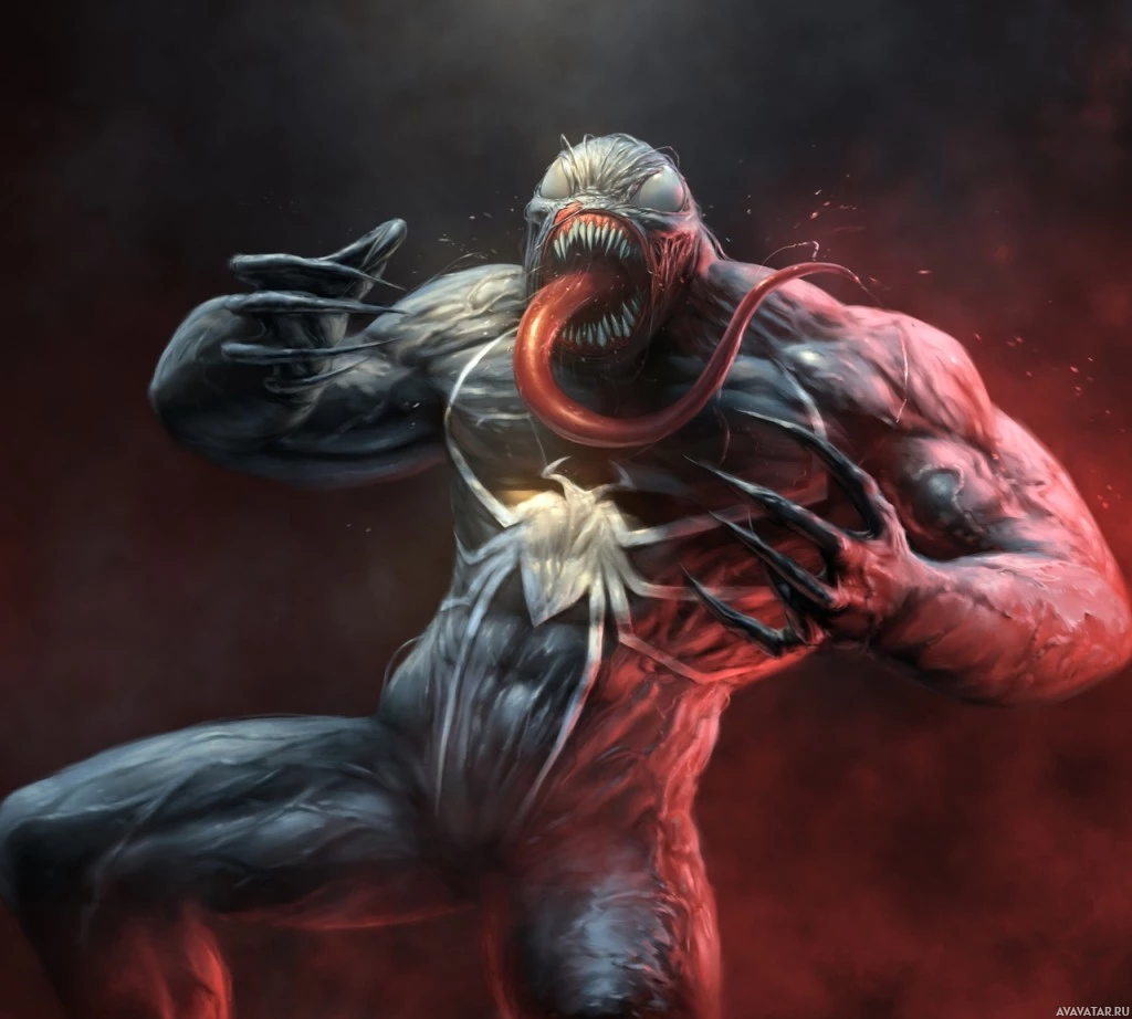 spider emblem on its chest, which represents Spider-Man's symbol. Venom is known for his aggressive behavior and
