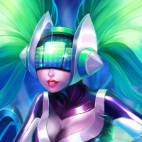 futuristic armor and accessories that reflect her abilities within the game. The character's design incorporates neon-like colors and has an energetic and dynamic feel to it, fitting her role as a supportive champion in "