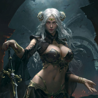 a female character with white hair. She is wearing armor and holding what appears to be a sword. Her attire suggests she might be from a fantasy or