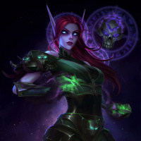 an ethereal orb and a symbol that appears to be a stylized skull or mask. The character is presented in