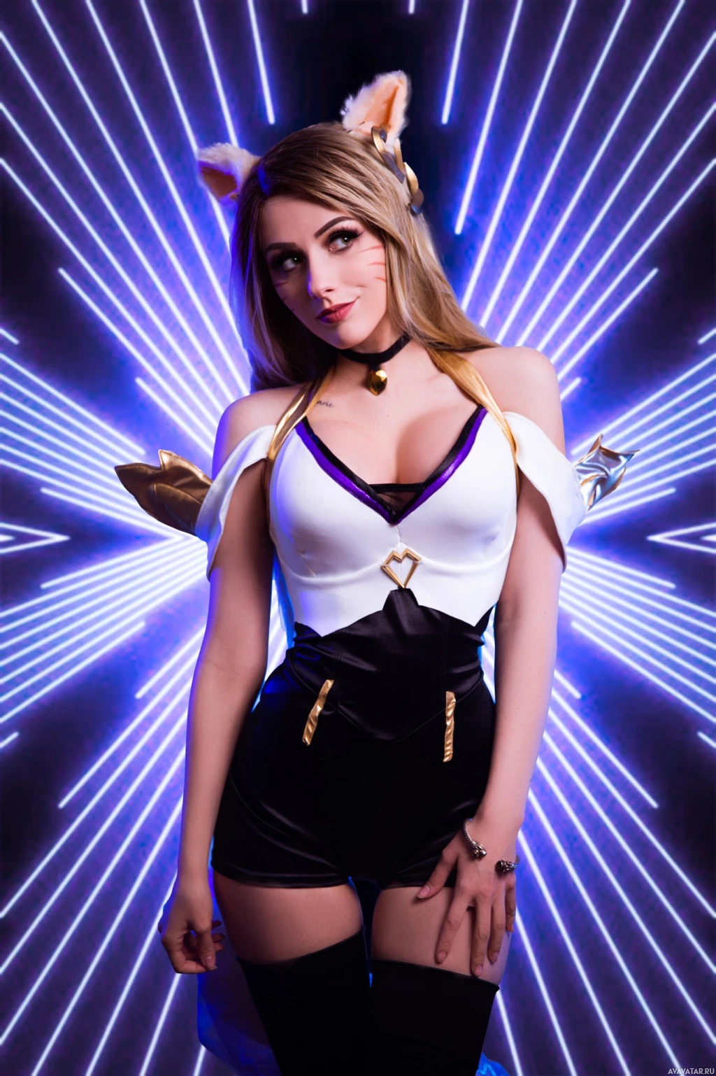 the video game "League of Legends." The costume includes elements such as the character's signature horn-like headpiece, her