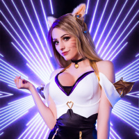 the video game League of Legends. The individual is dressed in an outfit that resembles