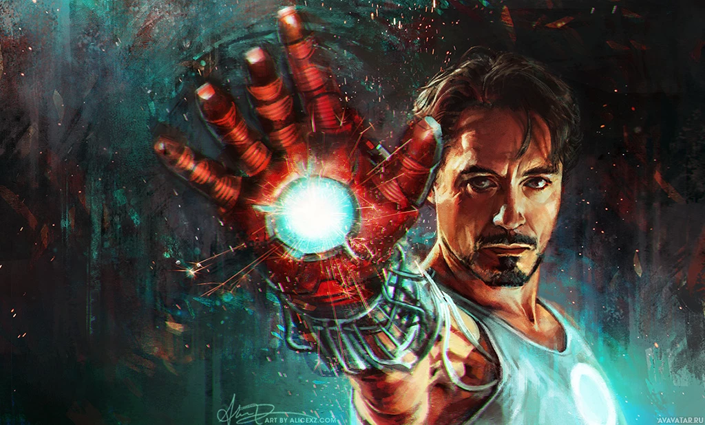 armored suit and high-tech gadgets, which he uses to fight villains and protect humanity. In this particular picture, Iron Man's iconic red and gold armor is clearly visible, along with a glowing arc reactor