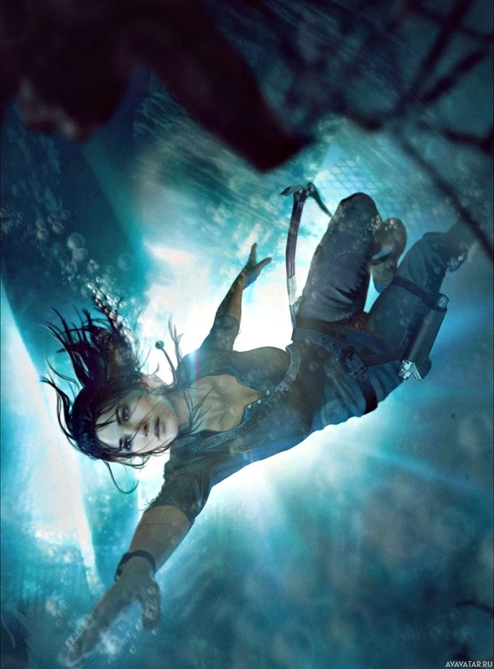 The image depicts a character that resembles Lara Croft, known from the "Tomb Raider"