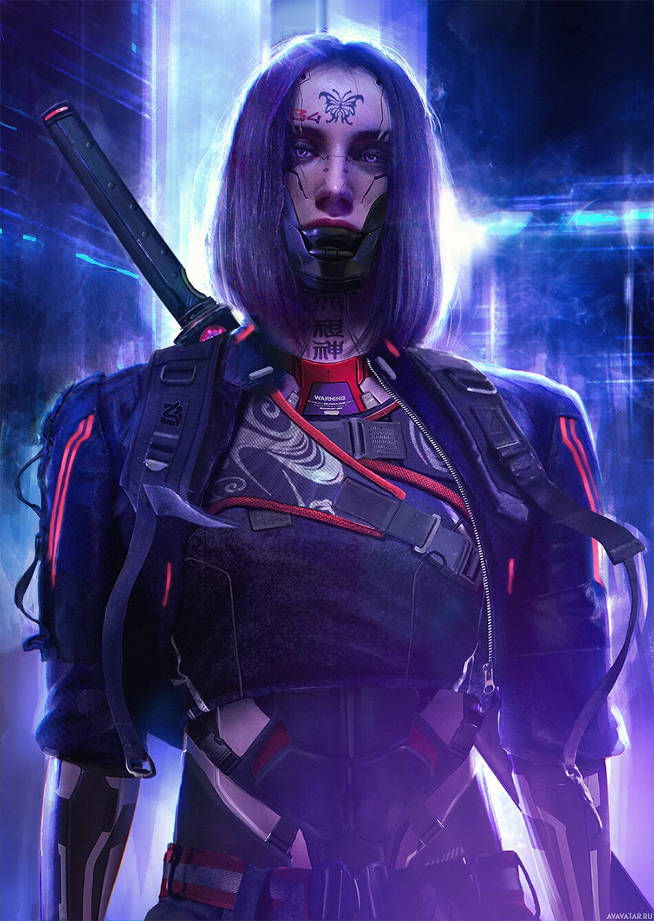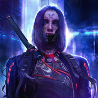 a female character who appears to be a cyborg or robot with human-like features. She has short hair and is wearing what seems to be a futuristic armor, suggesting she might be from