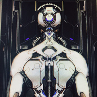 futuristic setting. The robot has mechanical structures and components that are likely associated with its function, possibly as a piece of