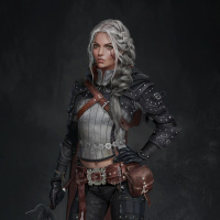 The image shows a 3D model of a character named Ciri from "The Witcher"