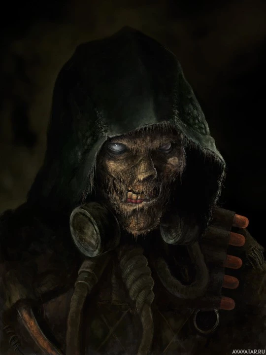 a hooded cloak or jacket with a high collar, which adds to its undead appearance. There are some