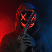 promotional materials or themed events. The person is dressed in what looks like a costume, complete with a hoodie, reinforcing
