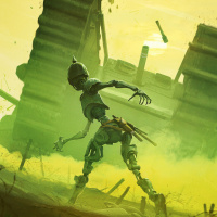 На картинке изображена научно-фантастическая сцена, где человекоподобный робот показан сзади. Похоже, это часть художественного изображения или концептуальной иллюстрации. Обстановка напоминает постапокалиптическую обстановку с поврежденным танком на заднем плане и гранатой на земле. Возникает ощущение разрушения и опустошенности, которое в научной фантастике часто ассоциируется с такими темами, как война, выживание или искусственный интеллект.