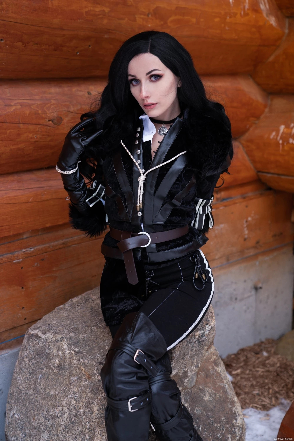 In this picture, there is a person dressed in costume. The costume appears to be inspired by the character Yennefer from