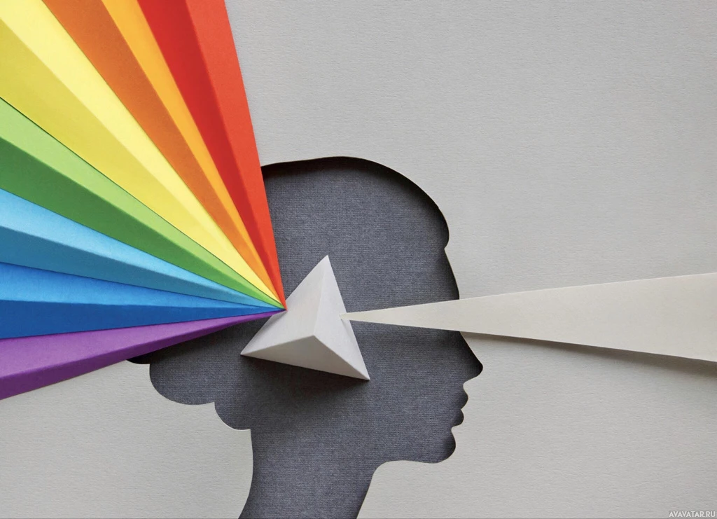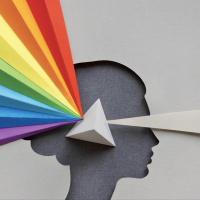 silhouette of a person with one eye covered, symbolizing blindness or lack of understanding. They are holding what appears to be a large, colorful rainbow flag up to their face as if they're trying to see through it. This could represent the concept of being able to see beyond surface appearances and seeing things in their