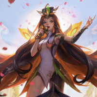 long hair and is adorned with various accessories and attire that give her a distinctive appearance. There are also graphics elements such as light rays emanating from the background, possibly indicating