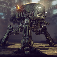 a science fiction setting. It looks like an armored combat mech or a piece of