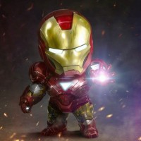 red eyes that conceal his identity as Tony Stark. This representation captures the character's distinctive design elements and