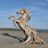 wooden sculpture of a horse in the shape of a tree. This natural-looking artwork is often referred to as a "horse carved from a single