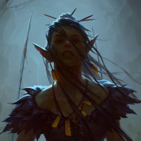 a fantasy scene featuring an elf. The elf is wearing armor and has wings, suggesting she might be some kind of guardian or warrior from