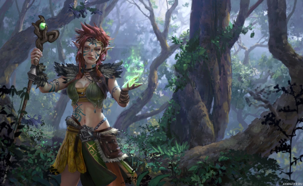 The image features a character dressed in fantasy-style clothing, resembling that of an elf with