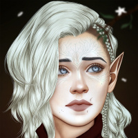 white hair, and the style of the artwork suggests a detailed and possibly magical or mystical theme, given the ethereal quality of the hair and the expression on the character's face. The character is wearing what looks like a tunic with