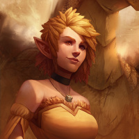female character is dressed in what appears to be elven attire, indicating that she might be an elf. They are standing next to each other with the female character looking at the viewer. In the background, there's a warm, glowing light that creates