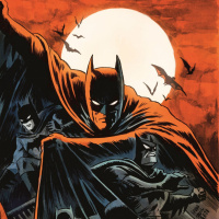 book character Batman. The art style is reminiscent of traditional comic book artwork with
