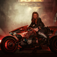 the video game "Cyberpunk 2077," which is known for its immersive, dystopian world with advanced technology and aesthetics. The character is wearing what appears to be armor or