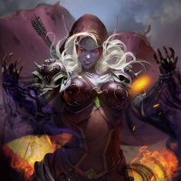 The image shows an artistic representation of Sylvanas Windrunner, a character from the "World of Warcraft"