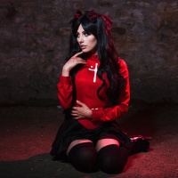 dark hair and is wearing a red jacket over a black garment. The setting looks like