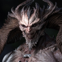 The image depicts a fantasy or horror-themed character that resembles a demon. The creature has an exaggerated and twisted facial expression, with prominent horns,