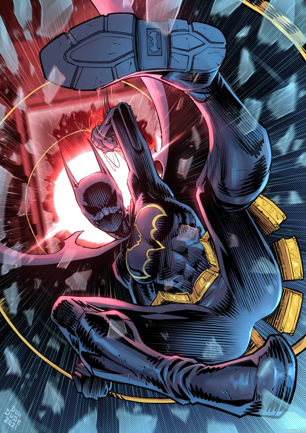 The image features a character that appears to be Batgirl, an iconic superheroine from the DC
