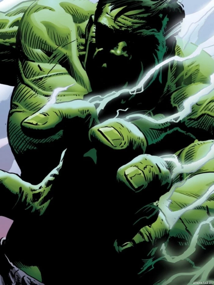 muscular build. The Hulk is shown in