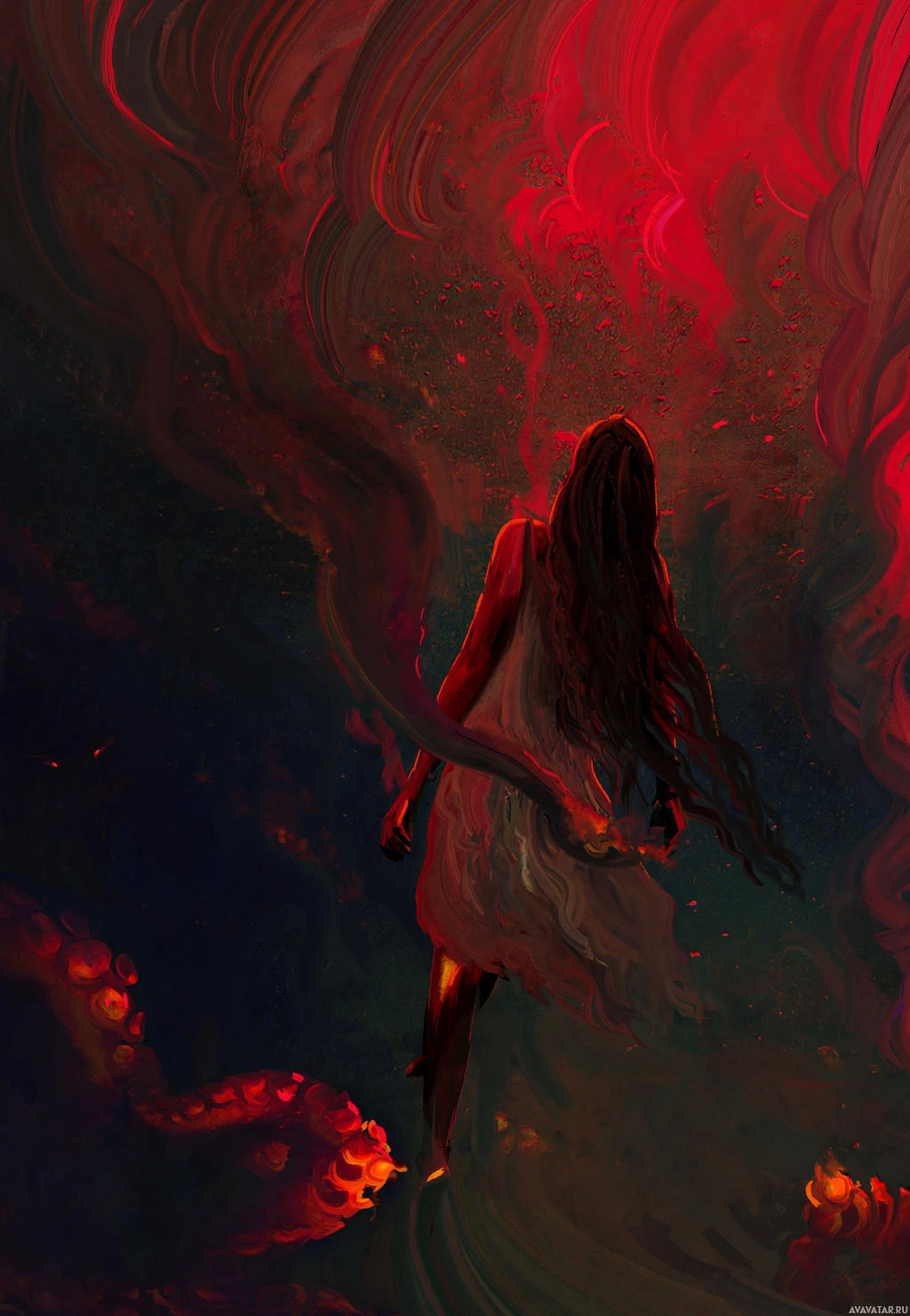 red tones against a darker backdrop. The overall style of the image suggests it might be from a fantasy or supernatural theme.