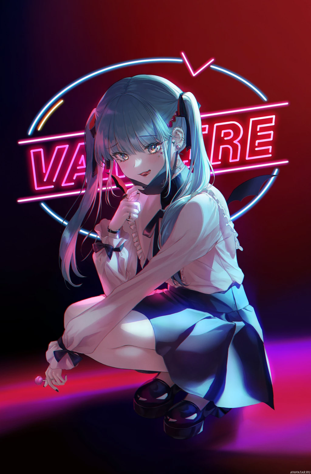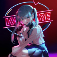 a neon sign that says "VAMPIRE," which ties into the vampire theme of the character. The overall style suggests it could be an image from a visual novel or