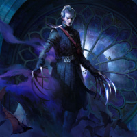 pale skin and pointed ears, which are characteristic of non-human races in the series, known as witchers or monster hunters. He is dressed in