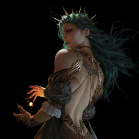 a glowing orb in her hand, which could be interpreted as representing power or a magical object. The artwork conveys a sense of mystique and otherworldliness, with the character's back facing the viewer, adding to