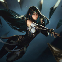 a chaotic environment with shattered glass or crystals, indicating a scene of high intensity or conflict. It's important to note that the character in this image might be from