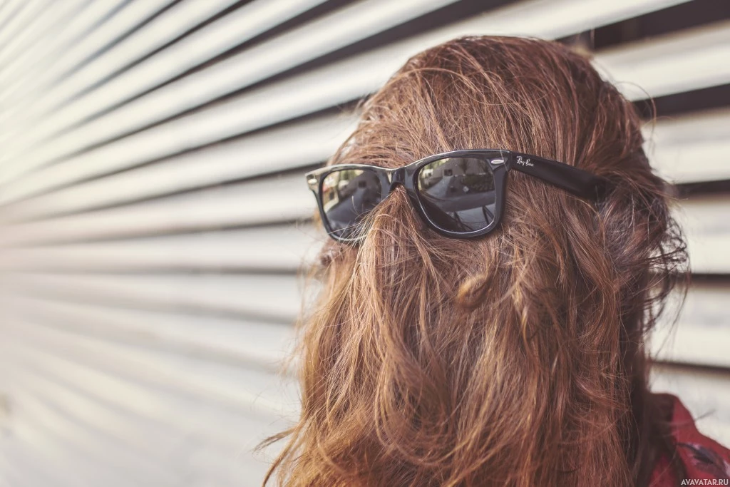 На картинке изображен человек, одетый в солнцезащитные очки с лицом, затененным тем, что кажется густыми, лохматыми волосами или костюмом. Невозможно определить пол человека из-за полного охвата лица и головы. Стиль фотографии придает ей художественный или комедийный вид.