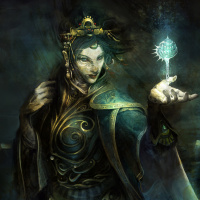 The image depicts a fantasy-themed character who appears to be an elf. The individual is wearing ornate and dark attire, which could suggest a magical or mystical role within