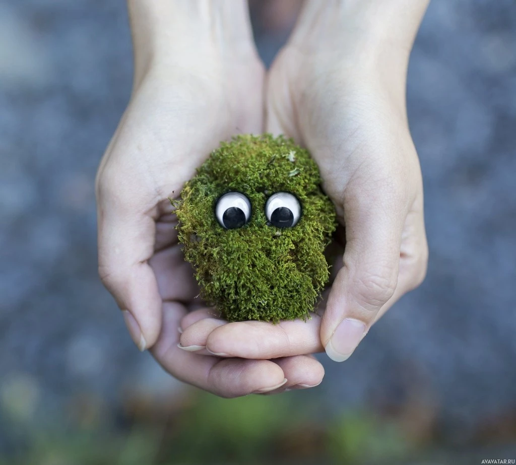 covered rock with two googly eyes on it. This gives the impression that the rock has been anthropomorphized, as if it were