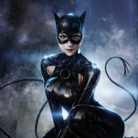 The image shows a character dressed as Catwoman, who is a fictional supervillain and anti-heroine appearing in American