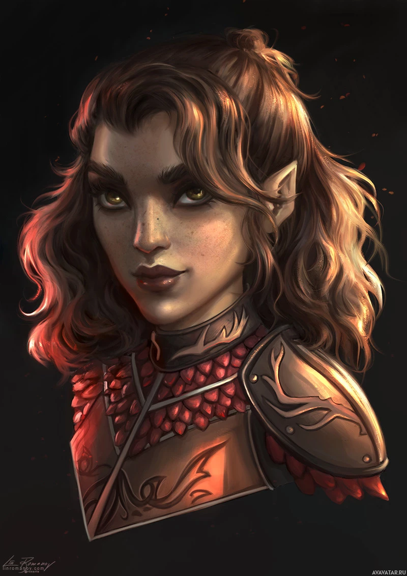 red hair and pointed ears, wearing what appears to be armor or battle attire. This character is depicted in