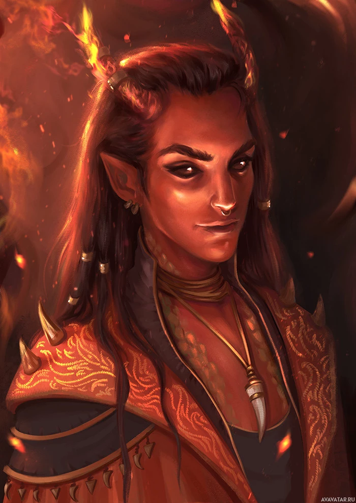 a fantasy setting, potentially portraying a demon or an evil figure. The character has long