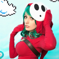 wearing cosplay, specifically dressed as Link from "The Legend of Zelda" series. They are sitting on what appears to be grass with their hands raised up to their ears in