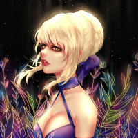 blonde hair and is wearing what appears to be an outfit that could be associated with a fantasy or alternative fashion theme, possibly inspired by a steampunk or gothic style. The background suggests a magical or enchanted setting with subtle