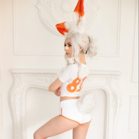 a white hat with orange accents, reminiscent of Team Orange's logo. Additionally, they are wearing sneakers and have a basketball between their legs. This combination suggests