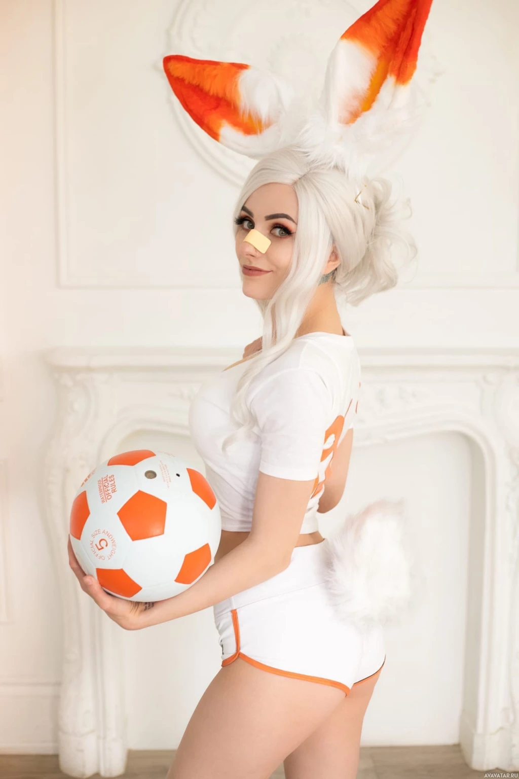a soccer ball with a graphic that resembles the Pokémon logo, indicating that this image could be related to both cosplay and sports.