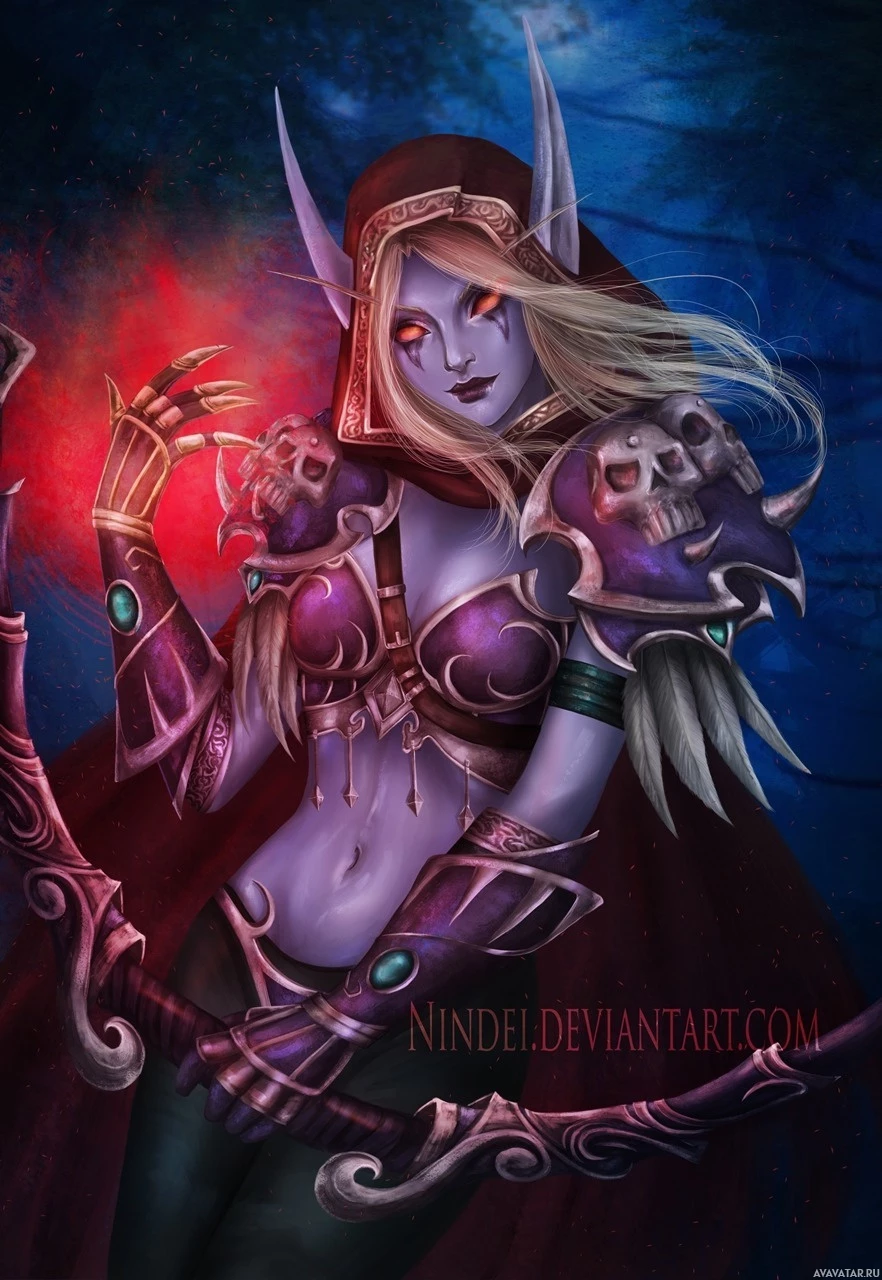 the Warcraft universe, Sylvanas Windrunner. She is portrayed as an elven warchief and leader of the Horde faction in