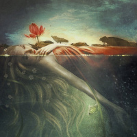 sea creatures like fish around her. The artwork appears to be rich in detail and suggests a serene or perhaps contemplative scene within