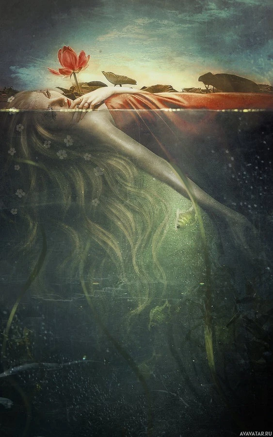 вода | Скачать аватары с водой | Water | Мистическая сцена с девушкой и цветком в подводной среде