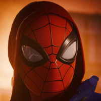 The image shows the character Spider-Man from a video game. He is wearing his iconic red and blue suit with webslingers and a mask that has white eyes, which are characteristic features of the Spider-Man persona.